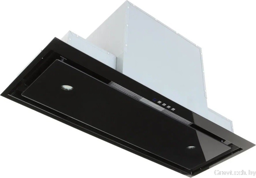 конструкция скрытая, монтаж для встраивания, ширина 73 см, управление электронное/кнопочное/дистанционное, производительность мотора 1250 м?/ч, цвет черный