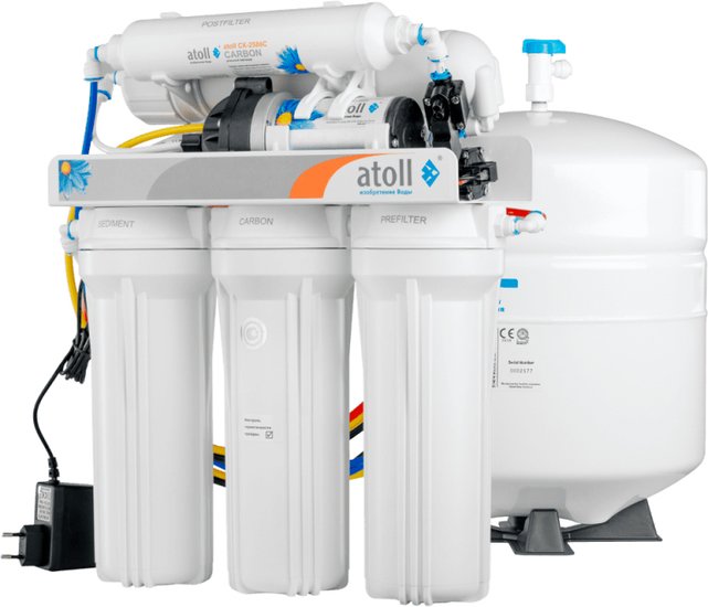 Префильтры - используются для предварительной очистки воды от нерастворимых частиц, хлора, органических веществ до того, как вода достигнет мембраны, и способствуют увеличению срока службы основного чистящего элемента системы - мембраны.; atoll P5 - у |