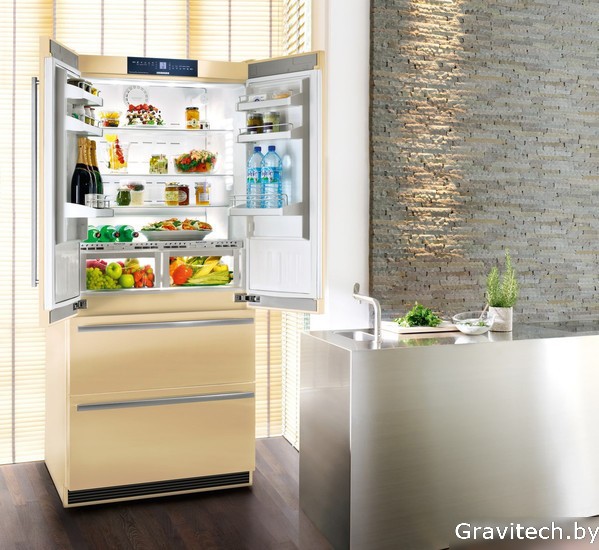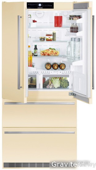 No Frost (морозильная камера), электронное управление, класс A++, полезный объём: 471 л (357 + 114 л), инверторный компрессор, зона свежести, 91x61.5x203.9 см, бежевый