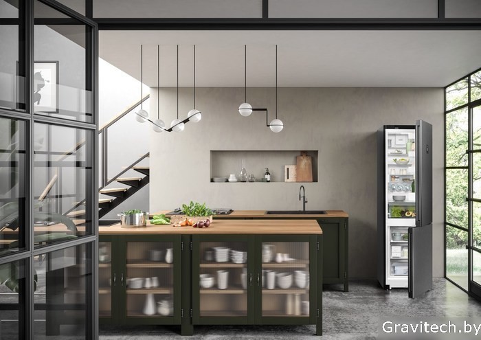 отдельностоящий, No Frost (морозильная камера), электронное управление, класс A++, полезный объём: 360 л (266 + 94 л), перенавешиваемые двери, автодоводчик дверей, складная полка, полка для вина, лоток для яиц, 59.7x67.5x201.5 см, темная сталь