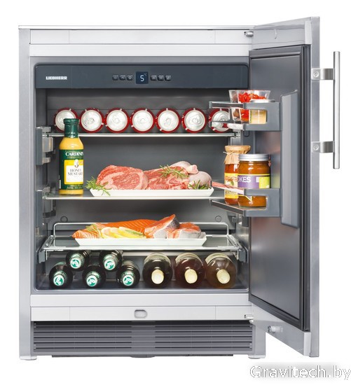 отдельностоящий, без No Frost, электронное управление, полезный объём: 104 л, использование в неотапливаемых помещениях, складная полка, 59.8x57.7x81.8 см, нержавеющая сталь