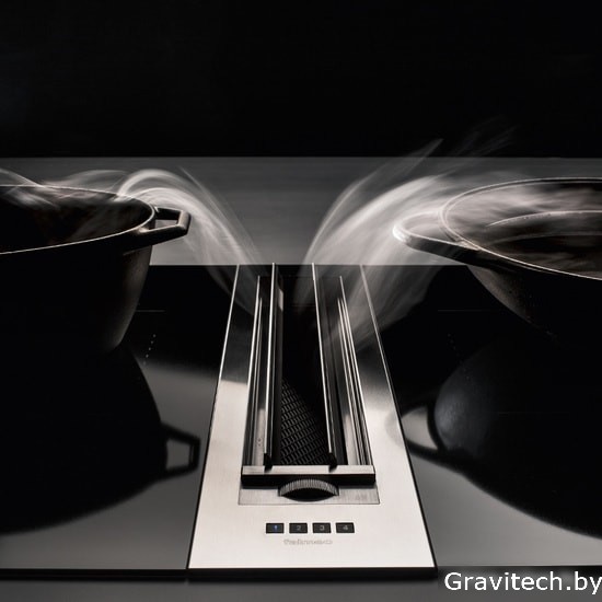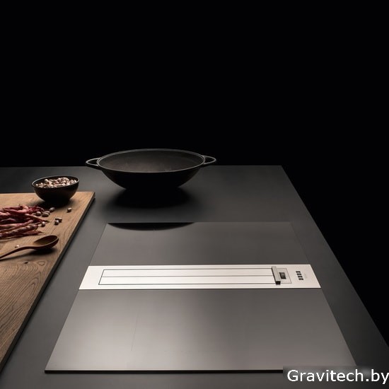 конструкция скрытая, монтаж для встраивания в столешницу, ширина 13 см, управление электронное/кнопочное, цвет нержавеющая сталь