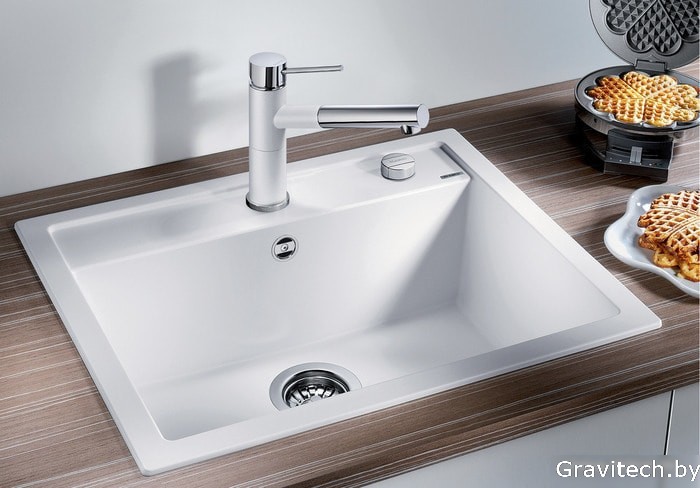 врезная на столешницу/врезная под столешницу, искусственный камень, размеры: 61.5x51 см, глубина чаши: 19 см, в шкаф шириной от 60 см, клапан-автомат