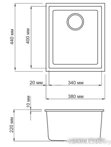 врезная на столешницу, искусственный камень, фактура: матовая, размеры: 38x44 см, глубина чаши: 22 см