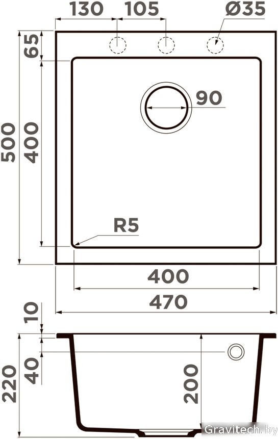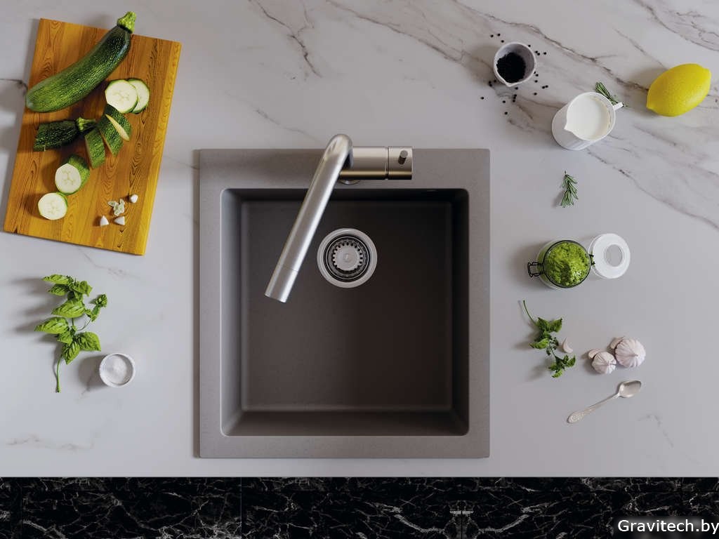 врезная на столешницу, искусственный камень, размеры: 47x50 см, глубина чаши: 20 см, в шкаф шириной от 45 см