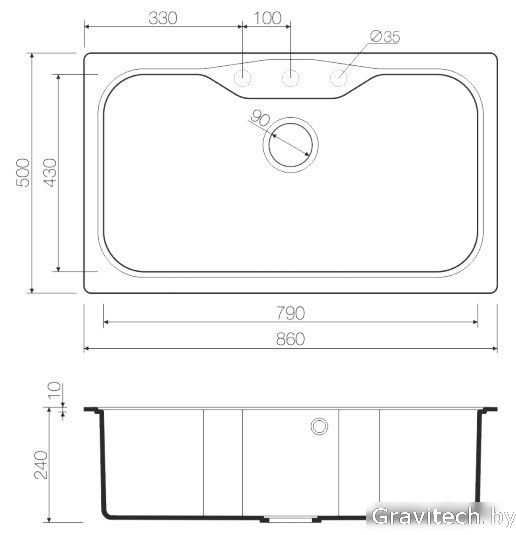 врезная на столешницу, искусственный камень, размеры: 86x50 см, глубина чаши: 24 см, в шкаф шириной от 90 см