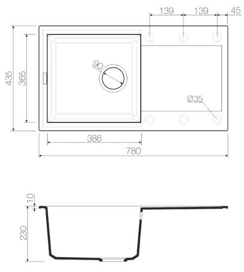 врезная на столешницу, искусственный камень, размеры: 78x43.5 см, глубина чаши: 23 см, в шкаф шириной от 50 см