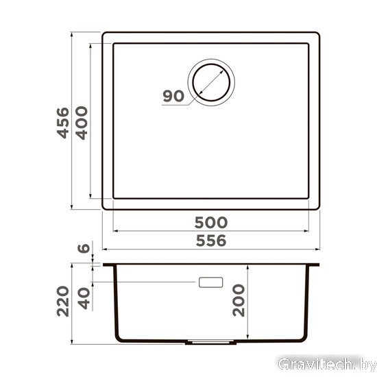 врезная на столешницу/врезная под столешницу, искусственный камень, размеры: 55.6x45.6 см, глубина чаши: 20 см, в шкаф шириной от 60 см