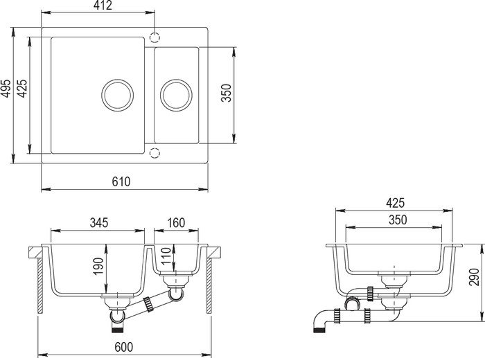 врезная на столешницу, искусственный камень, размеры: 61x49.5 см, глубина чаши: 19 см, в шкаф шириной от 60 см, клапан-автомат