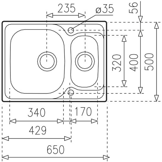 врезная на столешницу, нержавеющая сталь, фактура: полированная, размеры: 65x50 см, глубина чаши: 17 см, в шкаф шириной от 60 см