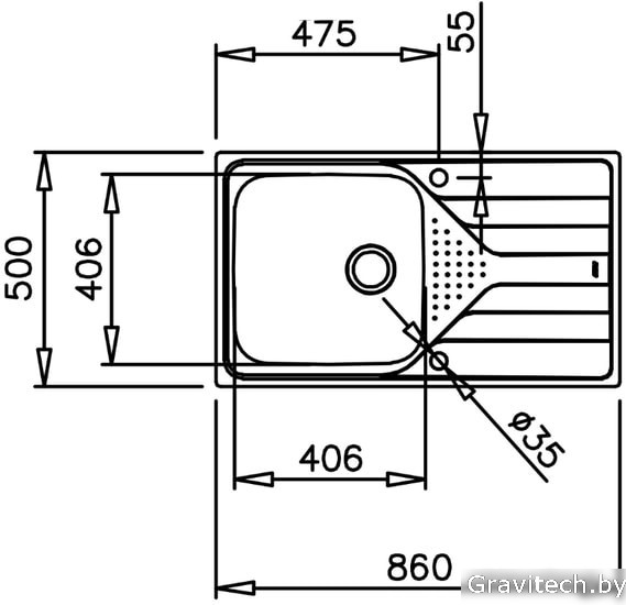 врезная на столешницу, нержавеющая сталь, фактура: полированная, размеры: 86x50 см, глубина чаши: 17.5 см, в шкаф шириной от 50 см