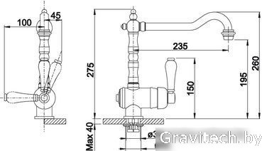 Длина (вылет) излива