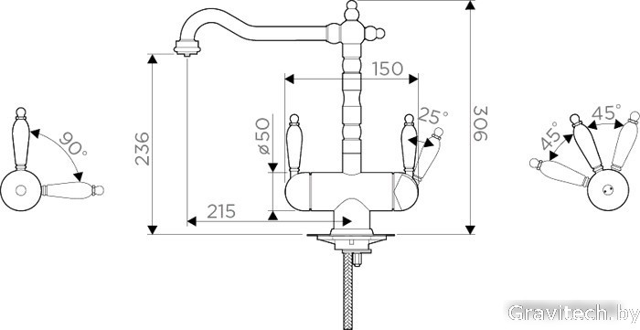 однорычажный смеситель для мойки, монтаж на раковину или столешницу