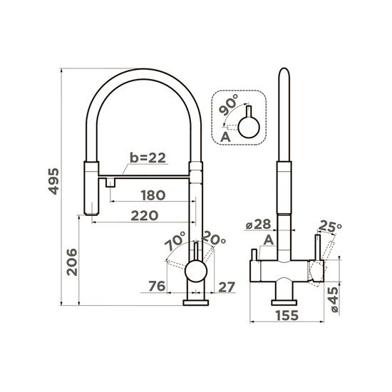 однорычажный смеситель для кухни, монтаж на раковину или столешницу