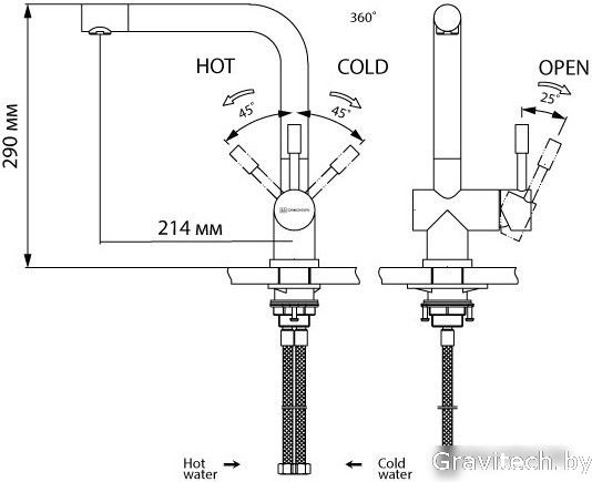 однорычажный смеситель для мойки, монтаж на раковину или столешницу