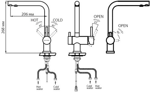 однорычажный смеситель для мойки, монтаж на раковину или столешницу