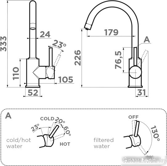 однорычажный смеситель для кухни, монтаж на раковину или столешницу