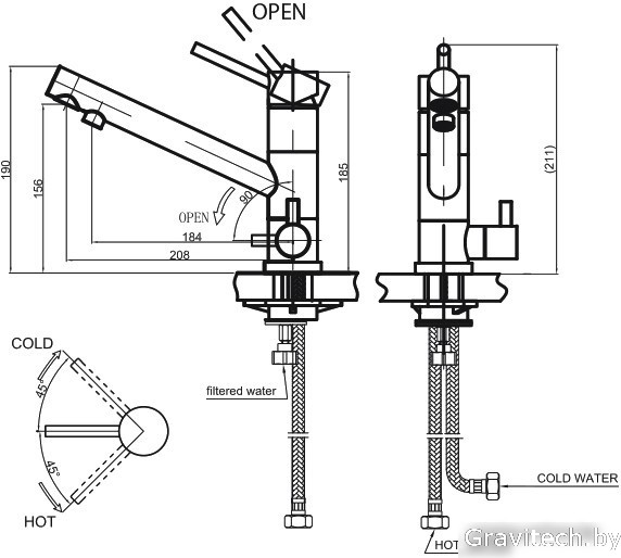 однорычажный смеситель для мойки, монтаж на раковину или столешницу