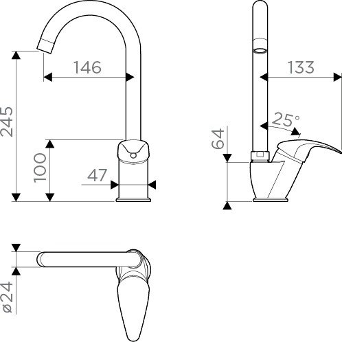 однорычажный смеситель для мойки, монтаж на раковину или столешницу