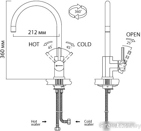 однорычажный смеситель для мойки, монтаж на раковину или столешницу