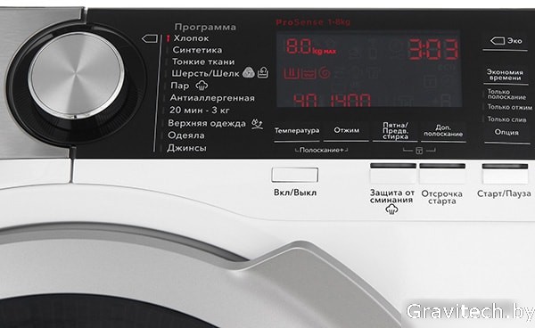 автоматическая стиральная машина, с паром, загрузка до 8 кг, отжим 1400 об/мин, глубина 57.1 см (с люком 60 см), энергопотребление A+++, защита от протечек, 10 программ