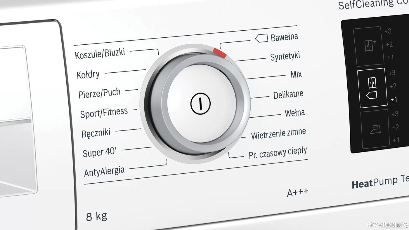 отдельностоящая, сушильная машина, сушка: конденсация с тепловым насосом, загрузка до 8 кг, глубина 61.3 см (с люком 66.5 см), энергопотребление A+++, 14 программ