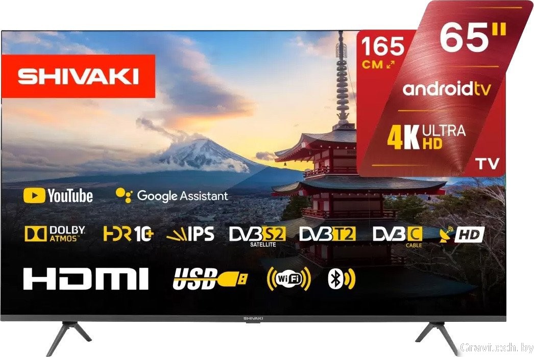 65" 3840x2160 (4K UHD), матрица IPS, частота матрицы 60 Гц, Smart TV (Android TV), HDR10+, Wi-Fi