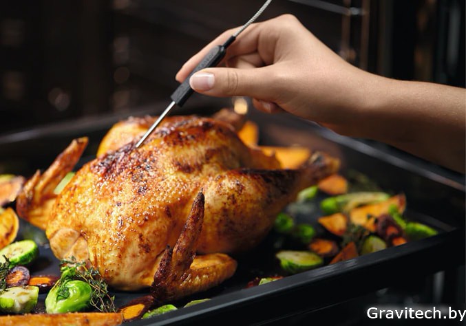 электрический с конвекцией, приготовление на пару, объем 71 л, 10 режимов, очистка пиролитическая, проволочные направляющие, телескопические направляющие, термощуп, энергопотребление A+