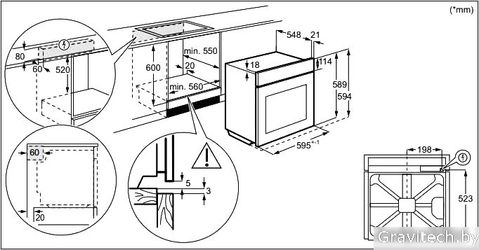 электрический с конвекцией, объем 71 л, 16 режимов, очистка каталитическая, проволочные направляющие, телескопические направляющие, термощуп, энергопотребление A++