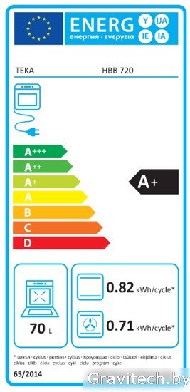 электрический с конвекцией, объем 70 л, 7 режимов, очистка паровая, проволочные направляющие, телескопические направляющие, энергопотребление A+