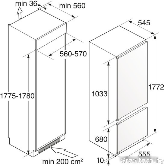 No Frost (морозильная камера), электронное управление, класс A++, полезный объём: 196 л, 55.5x54.5x177.2 см, белый