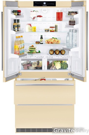 No Frost (морозильная камера), электронное управление, класс A++, полезный объём: 471 л (357 + 114 л), инверторный компрессор, зона свежести, 91x61.5x203.9 см, бежевый