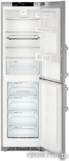 No Frost (морозильная камера), электронное управление, класс A++, полезный объём: 349 л (220 + 129 л), инверторный компрессор, 60x70.9x201 см, серебристый, отделка: защита от отпечатков