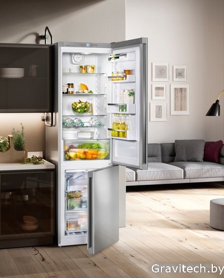 No Frost (морозильная камера), электронное управление, класс A++, полезный объём: 338 л (243 + 95 л), 60x65.5x201.1 см, серебристый, отделка: защита от отпечатков