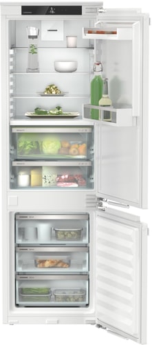 Встраиваемый двухкамерный холодильник Liebherr ICBNe 5123 Plus – современный прибор с широкой линейкой функций, эргономичной конструкцией и жестким креплением мебельных фасадов door on door. За удобное интуитивное управление устройством отвечает ЖК-дисплей с сенсорными кнопками. Предусмотрена цифровая индикация температуры для холодильной и морозильной камер.