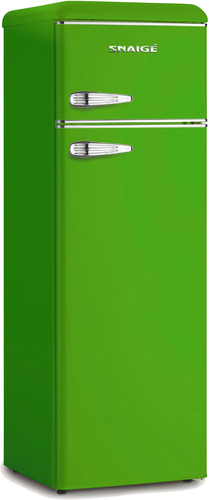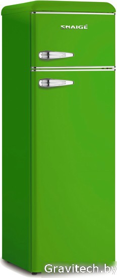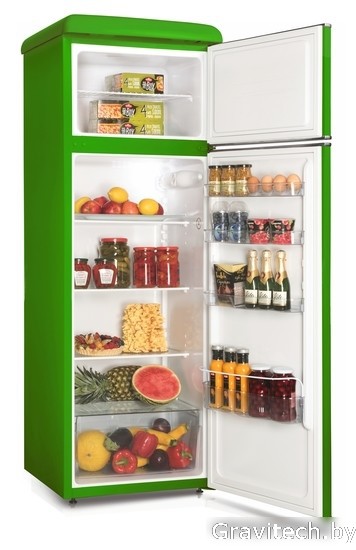 отдельностоящий, без No Frost, механическое управление, класс A++, полезный объём: 247 л (201 + 46 л), лоток для яиц, отделка: ретродизайн, 56x63x165.5 см, зеленый