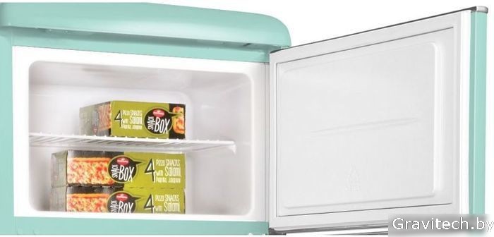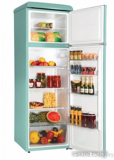 отдельностоящий, без No Frost, механическое управление, класс A++, полезный объём: 247 л (201 + 46 л), отделка: ретродизайн, 56x63x172.5 см, зеленый