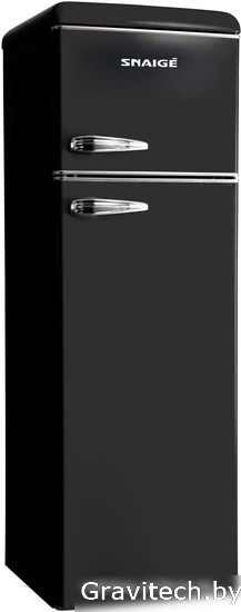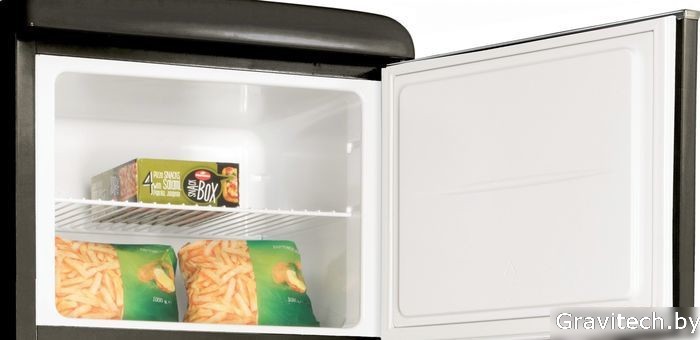 отдельностоящий, без No Frost, механическое управление, полезный объём: 252 л (194 + 58 л), лоток для яиц, отделка: ретродизайн, 56x63x172.5 см, черный