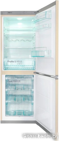 отдельностоящий, без No Frost, механическое управление, класс A+, полезный объём: 279 л (191 + 88 л), перенавешиваемые двери, полка для вина, лоток для яиц, 60x65x176 см, бежевый
