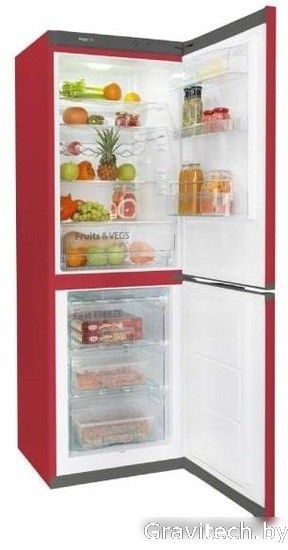 отдельностоящий, без No Frost, механическое управление, класс A+, полезный объём: 302 л (214 + 88 л), перенавешиваемые двери, полка для вина, лоток для яиц, 60x65x185 см, красный