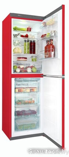 отдельностоящий, без No Frost, механическое управление, класс A+, полезный объём: 310 л (191 + 119 л), перенавешиваемые двери, полка для вина, лоток для яиц, 60x65x194 см, красный