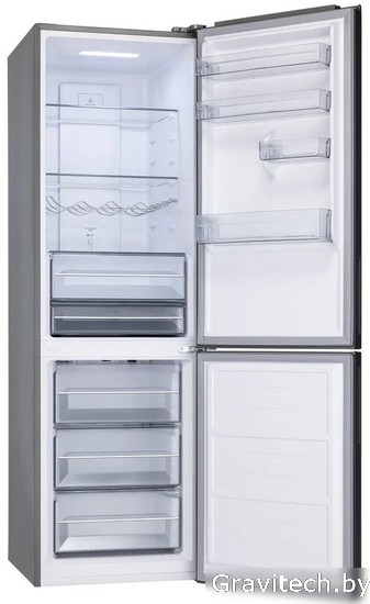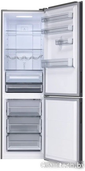 отдельностоящий, полный No Frost, электронное управление, класс A, полезный объём: 342 л (226 + 97 л), инверторный компрессор, зона свежести, перенавешиваемые двери, полка для вина, лоток для яиц, 60x68.5x195 см, серый
