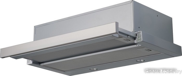 конструкция телескопическая, монтаж для встраивания, ширина 50 см, управление механическое/кнопочное, производительность мотора 750 м3/ч, цвет нержавеющая сталь