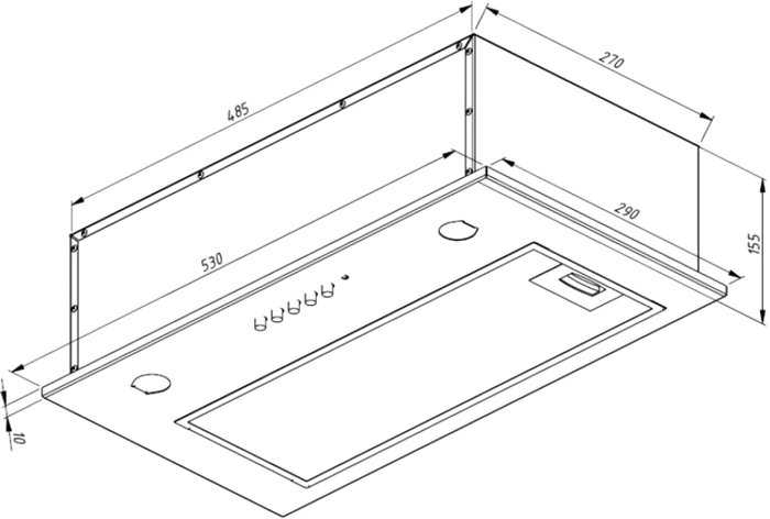 конструкция скрытая, монтаж для встраивания, ширина 53 см, управление механическое/кнопочное, производительность мотора 870 м3/ч, цвет черный