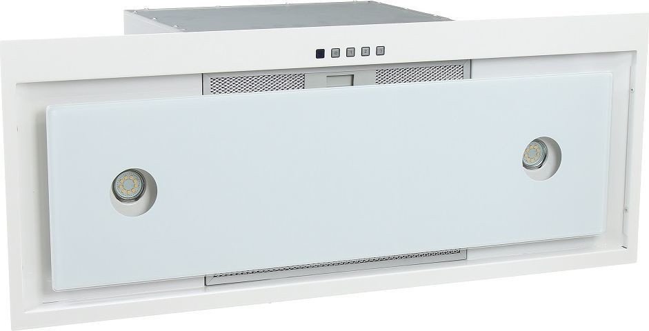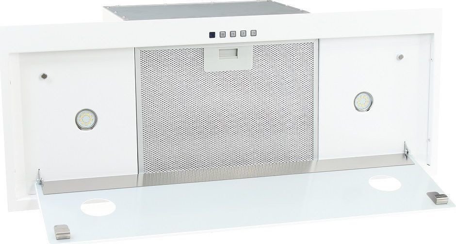 конструкция скрытая, монтаж для встраивания, ширина 73 см, управление электронное/кнопочное/дистанционное, производительность мотора 1250 м?/ч, цвет белый/нержавеющая сталь