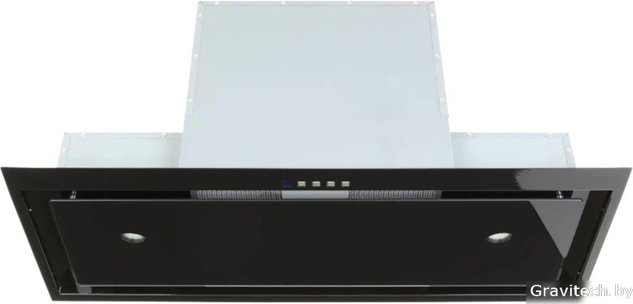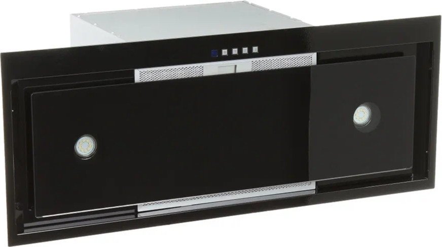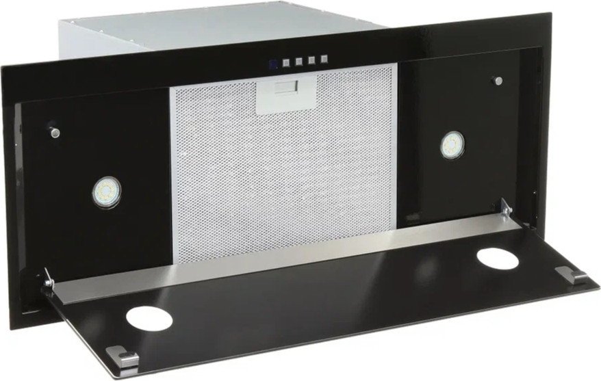 конструкция скрытая, монтаж для встраивания, ширина 73 см, управление электронное/кнопочное/дистанционное, производительность мотора 1250 м?/ч, цвет черный
