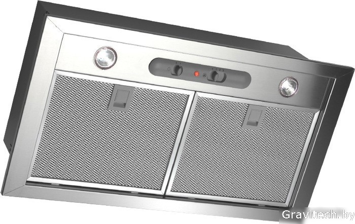 конструкция скрытая, монтаж для встраивания, ширина 50 см, управление механическое/слайдерное, производительность вытяжки 411 м3/ч, производительность мотора 450 м3/ч, цвет нержавеющая сталь