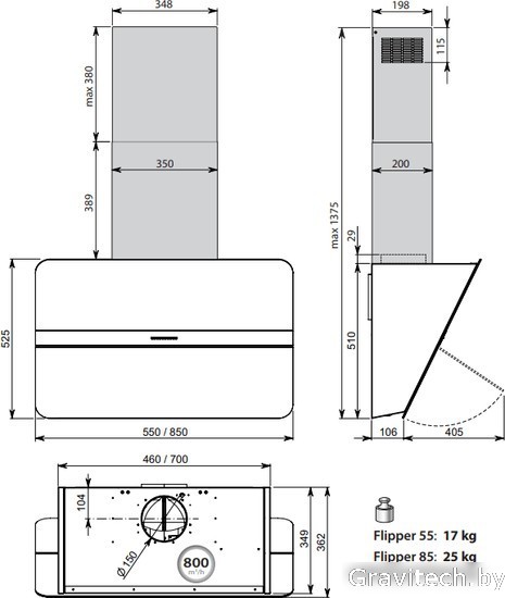 Кухонная вытяжка Falmec Flipper Design 85 800 м3/ч (серый)