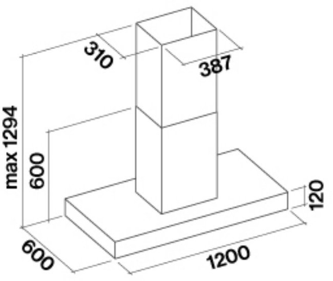 конструкция Т-образная, монтаж островной, ширина 120 см, управление электронное/кнопочное, производительность вытяжки 620 м3/ч, производительность мотора 1520 м3/ч, цвет нержавеющая сталь