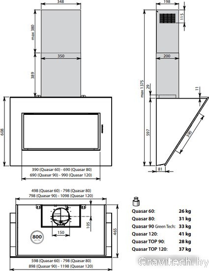 Кухонная вытяжка Falmec Quasar Design 80 800 м3/ч (черный)